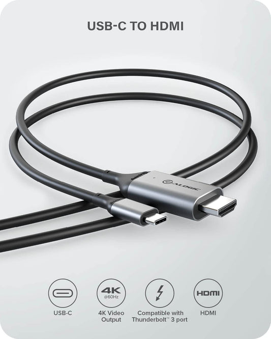 ALOGIC 2m Ultra USB-C (Male) to HDMI (Male) Cable - 4K @60Hz - Space Grey for MacBook Pro 2019/2018/2017, MacBook Air/iPad Pro 2019/2018, Samsung S10, Surface Book 2 and More
