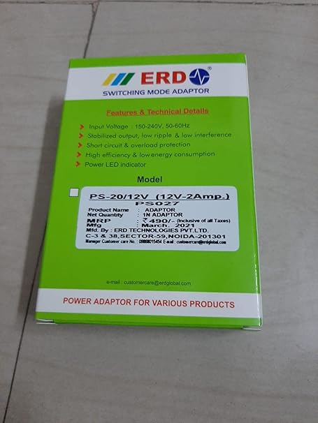 ERD Power Adaptor 12V-2AMP,PS-20/12v (12V-2A) PS027(ERP Code), BIS Certified Adaptor, Durable Adaptor, Adaptor for All DTH Set Top Box