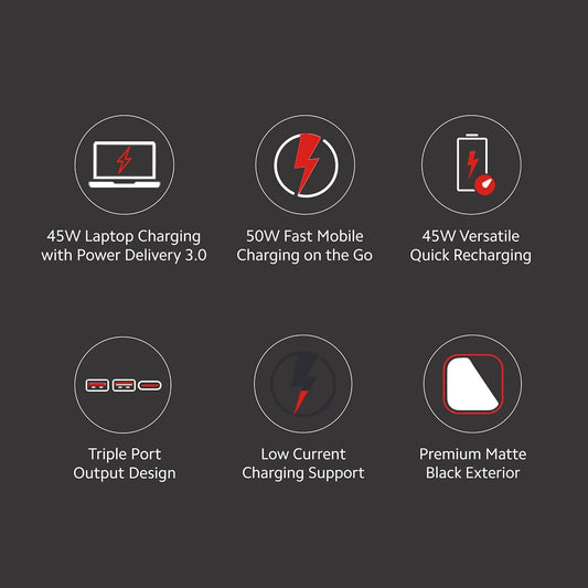 Xiaomi Power Bank Hypersonic 20000mAh 50W Lithium Polymer Supports Laptop Charging 50W Mobile Charging | Power Delivery 3.0 Fast Charging | Triple Output Port (Black)