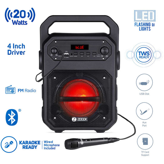 Zoook Rocker Thunder Bluetooth Party Speaker 20 watts with Karaoke Mic/TF/FM/Lights/USB/Party Speaker/ TWS/ echo control/ Bluetooth speaker/Portable speaker/Outdoor (Black)