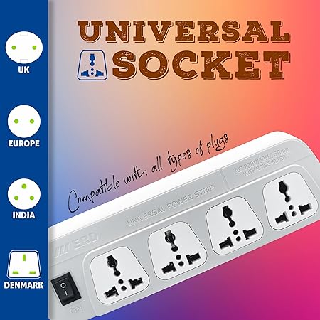 ERD EB-11 6 Amp Power Extension Board with 4 International Socket Extension Cord for Home Appliances | All Type Compatibility & Household | Cord Length 1.5 Meter