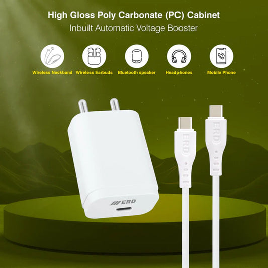 ERD TC-233, 33W Charger with C to C Charging Cable PD+QC Protocol (White)